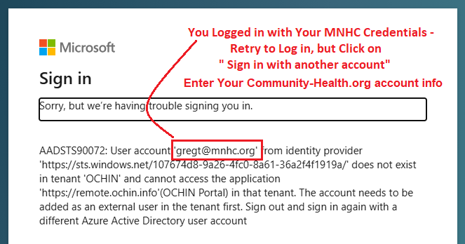 You have typed in your MNHC credentials