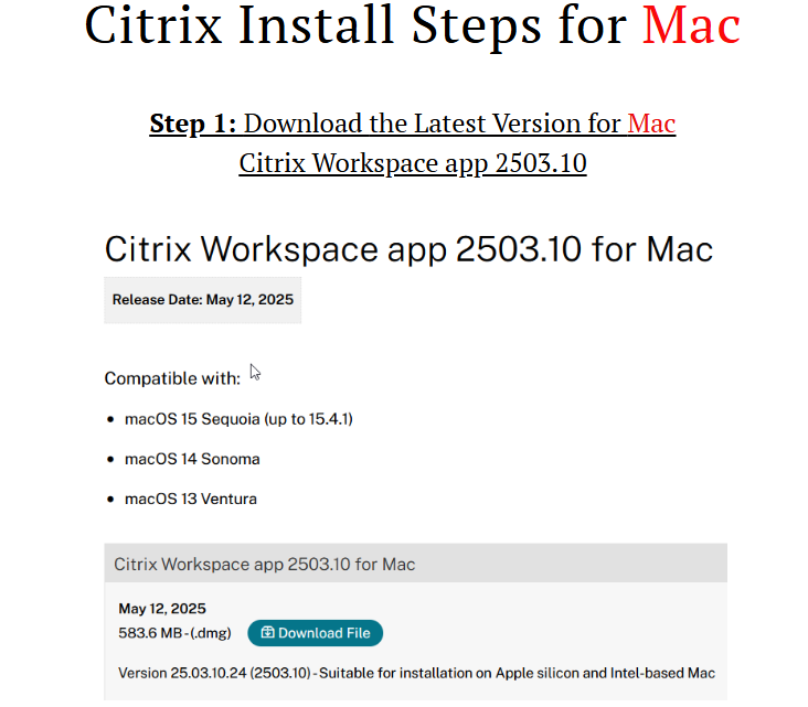 Citrix Workspace Version Issue for MAC