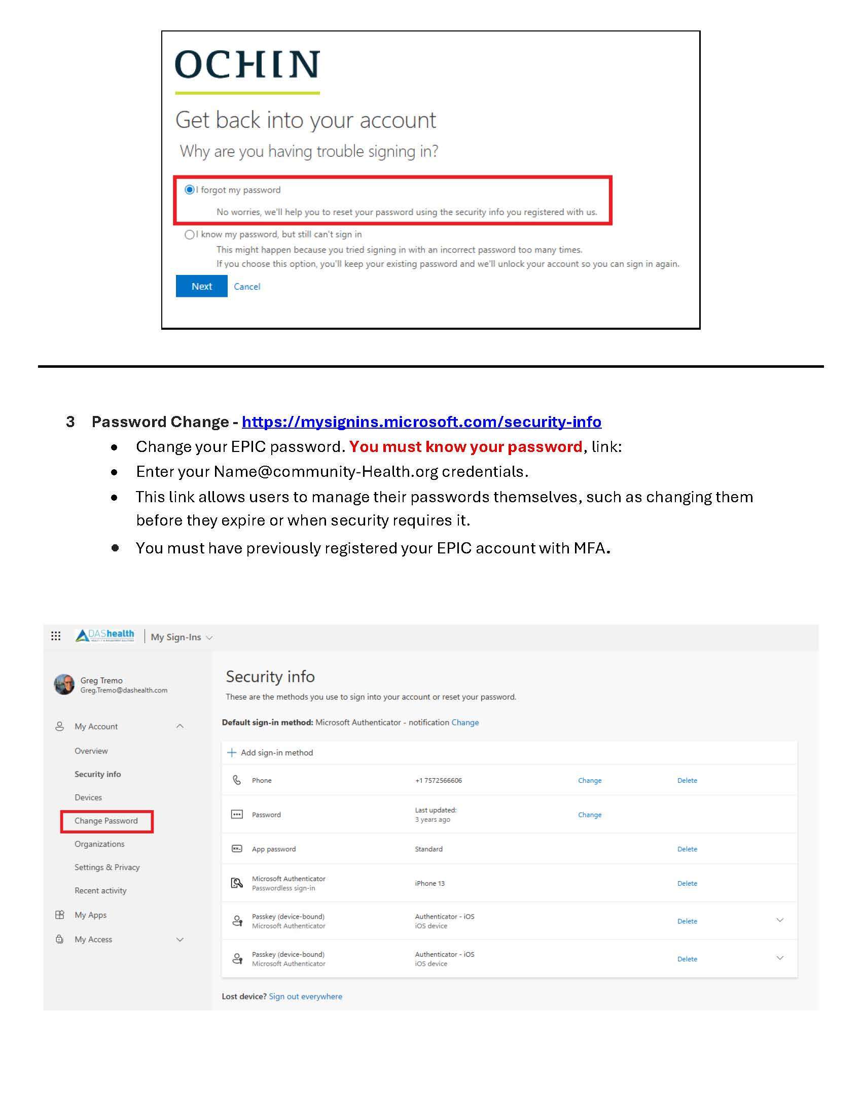 Verify that your Community Health account has been registered with Microsoft Authenticator.
