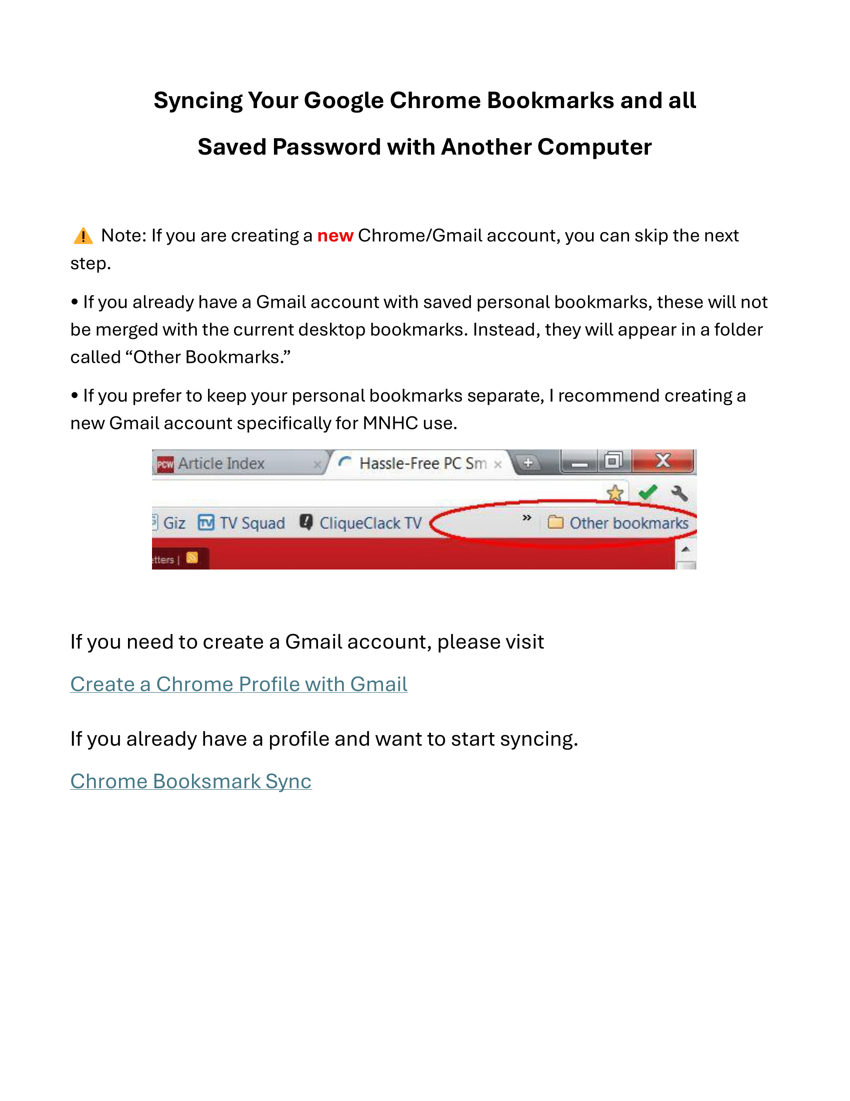 Below are optional step-by-step guides to: "Sync Chrome Bookmarks & Passwords", and "How to Sync Your Desktop Data"
