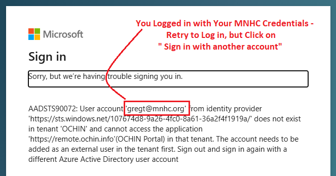 You have typed in your MNHC credentials.