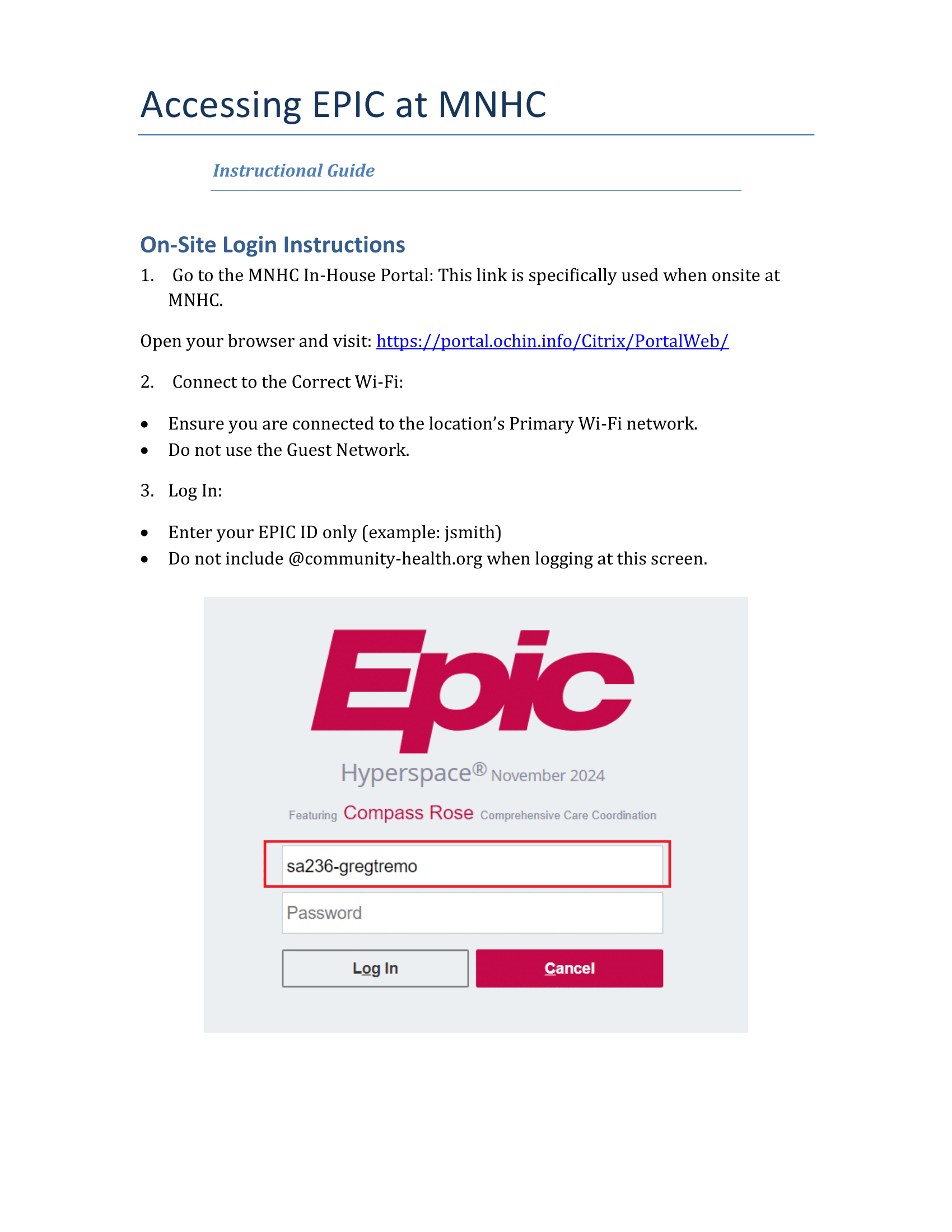 The links to Acess EPIC are Very Specific and based on your LOCATION.