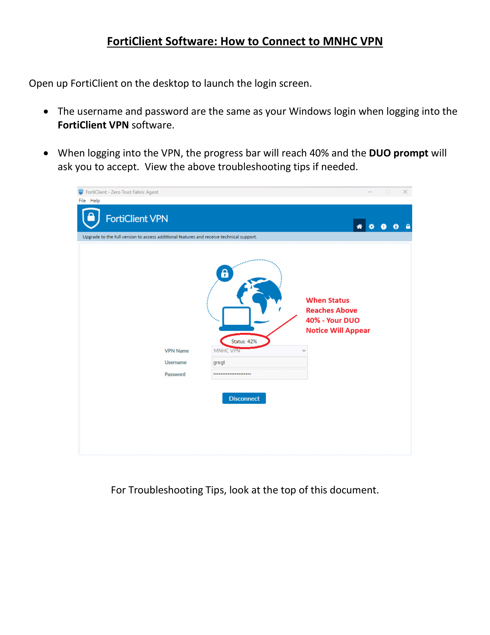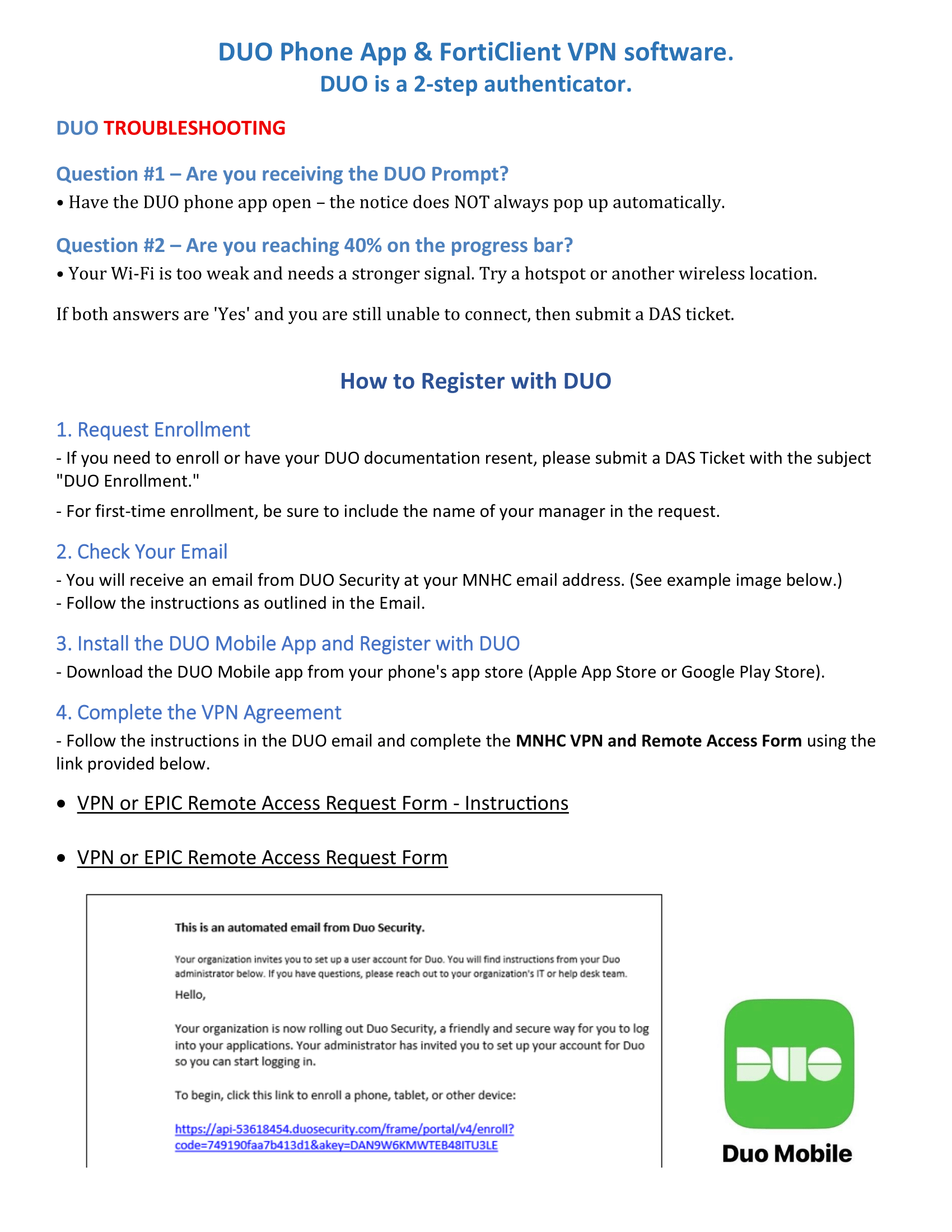 When Troubleshooting DUO Connection with ForitClient,