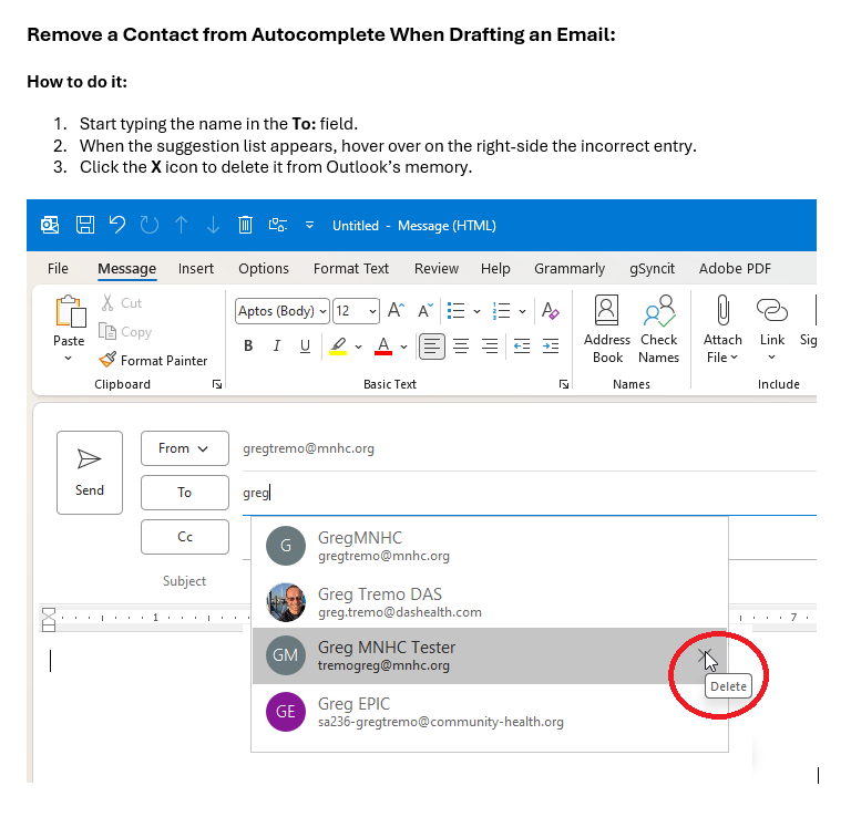 Outlook - Remove Contact