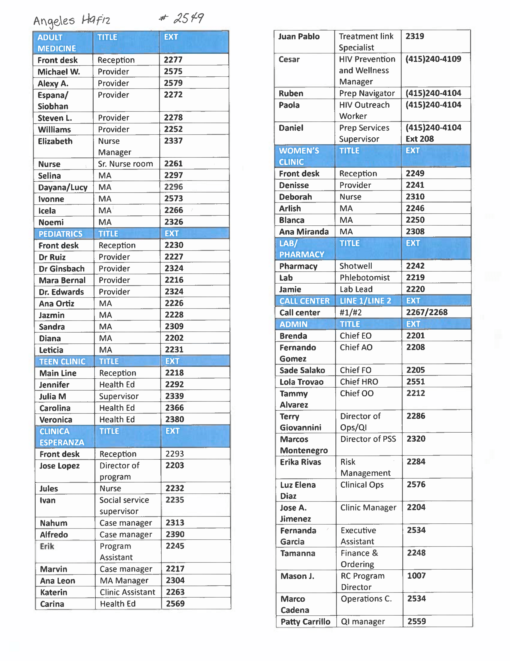 Please request an updated phone list from your department for accurate information.