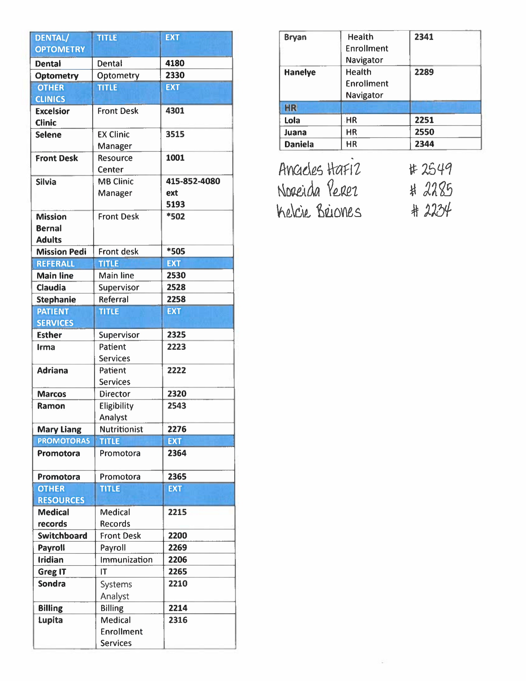 The MNHC Online Directory does not list the "Front Desks."