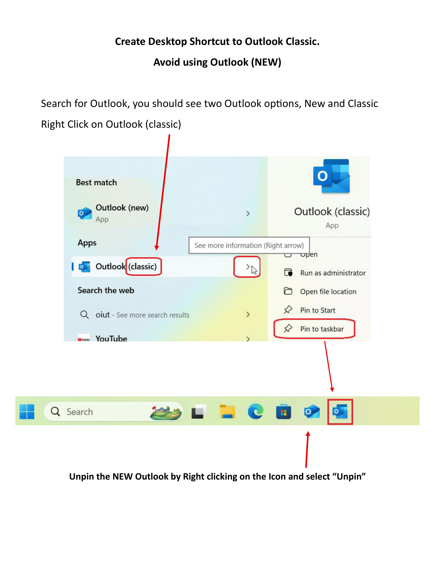 Create a Shortcut to Classic Outlook