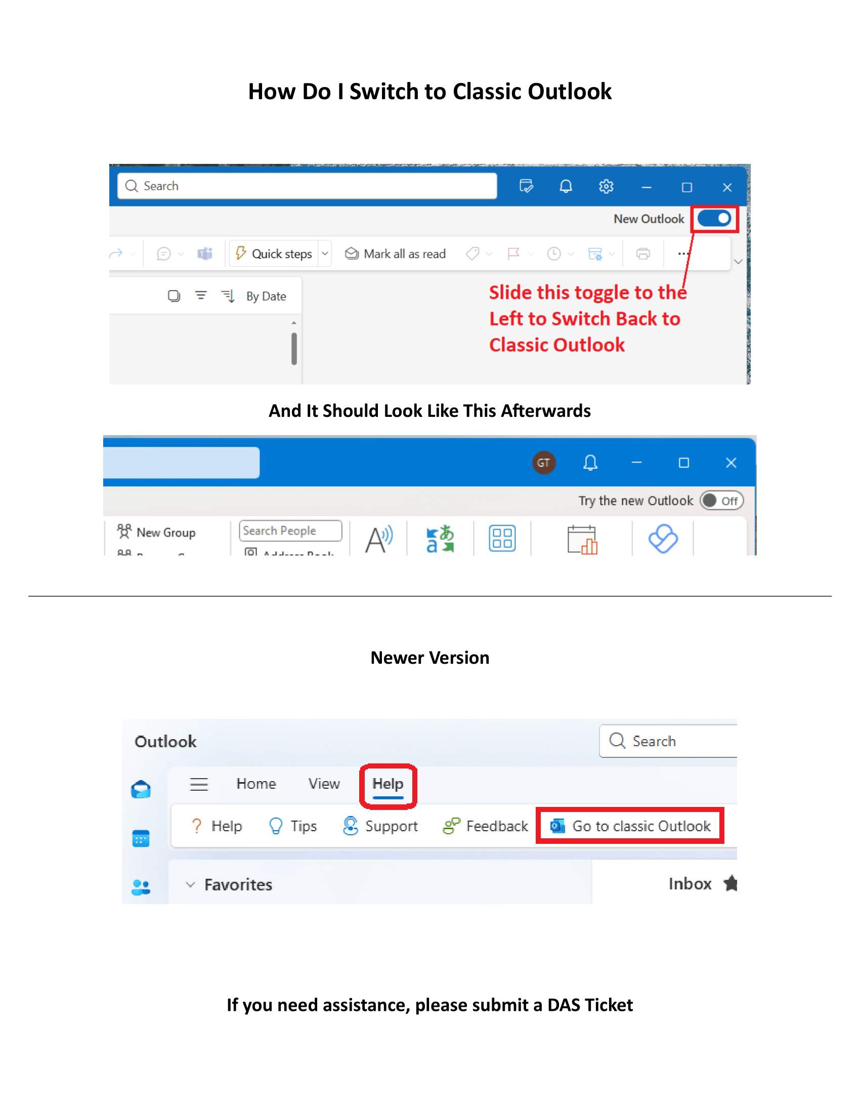 or Switch To Classic Outlook