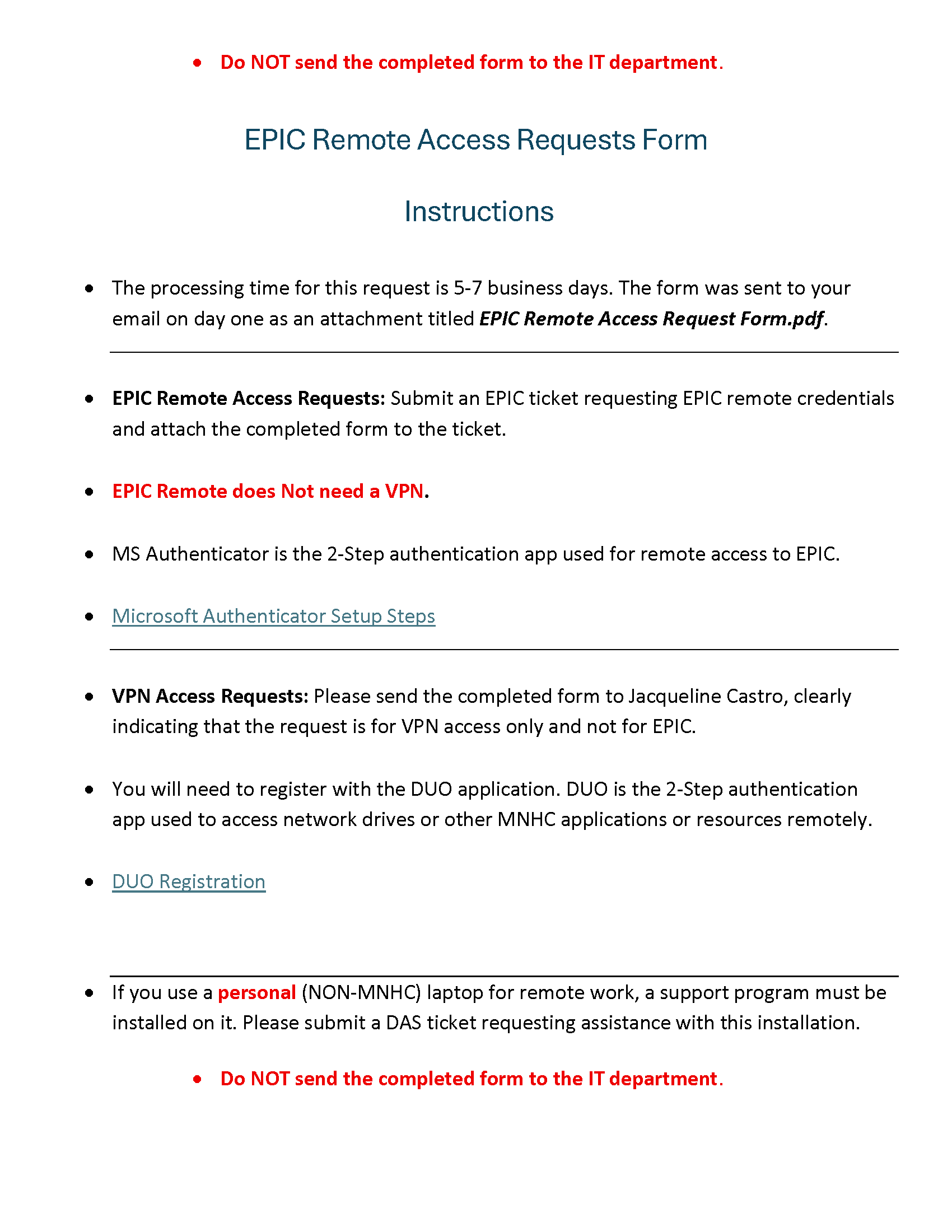 Do NOT Send Your Form to the IT Department
